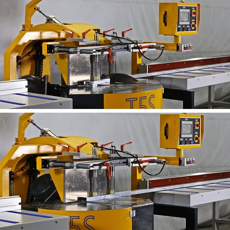 The machine supports automatic diagonal rotation between 22.5° and 157.5°, as well as vertical tilting from 0° to 45°. It is equipped with an automatic positioning system for precise length adjustment within the same tilting range. All five axes are driven by high-precision servomotors, ensuring exceptional control and machining accuracy. The X-axis runs on linear guideways, further enhancing both positioning and cutting precision. With outstanding overall performance, this machine sets a new standard in its class and is the ideal solution for operations that demand both flexibility and precision.